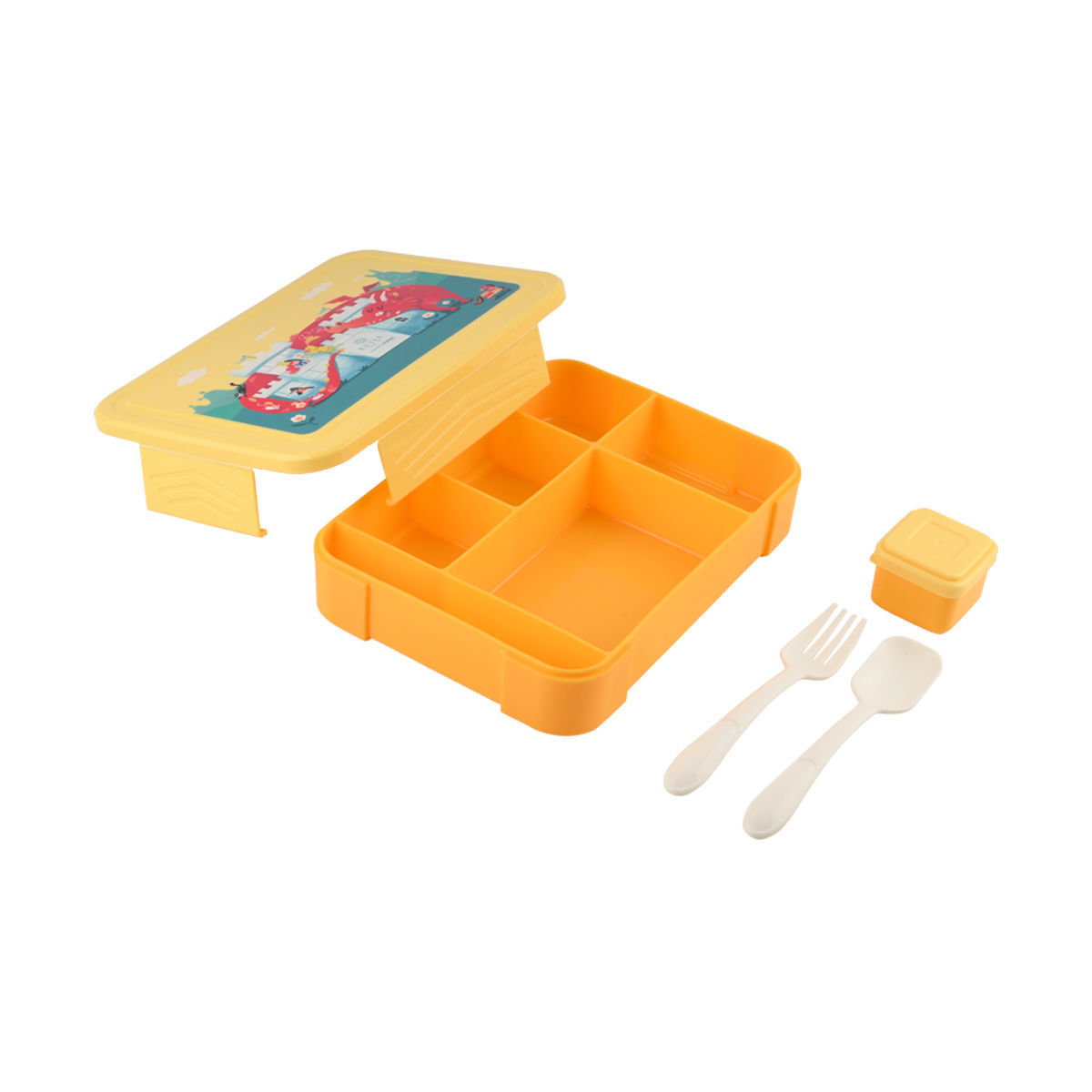 Το παιδικό φαγητοδοχείο FORTRESS DRAGON 1330ml με 5 θήκες από τη σειρά Save the Aegean είναι η ιδανική λύση για ποικιλία και σωστή διατροφική ισορροπία. Με πρακτική εσωτερική διαρρύθμιση, επιτρέπει τον διαχωρισμό γευμάτων ή σνακ, ενώ το επιπλέον μικρό δοχείο για σως και τα συνοδευτικά κουταλοπίρουνα το καθιστούν πλήρες και λειτουργικό. Είναι ασφαλές για χρήση σε φούρνο μικροκυμάτων, ψυγείο και πλυντήριο πιάτων, ενώ το ελαφρύ αλλά ανθεκτικό πλαστικό και το ζωηρό jungle σχέδιο το καθιστούν ιδανικό για το σχολείο, τη βόλτα ή την εκδρομή.